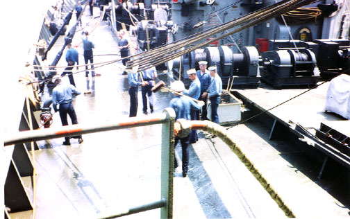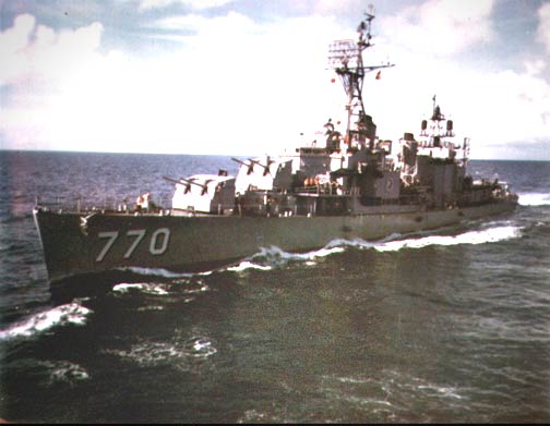 USS Lowry (DD-770) coming alongside - South